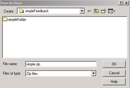 Choose New icons (as shown above) and select a folder to create a zip file and a name (I wrote simple.zip)
