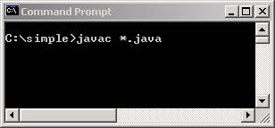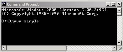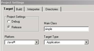 [In the case of Symantec Café we need to go into the Project->Settings… and change the Target Type to Application (instead of applet) and type just the word simple as the Main Class. Then recompile and run.]