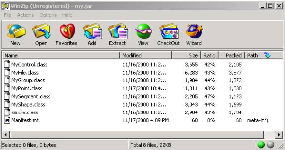 [For more on the jar command visit the official java site at http://java.sun.com/products/jdk/1.1/docs/guide/jar/]