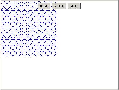 Then we define three Button objects bmove, brotate, and bscale. In the constructor we create the buttons and add them to the applet. (The button class is documented in the java awt API).