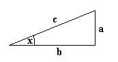 Trigonometry is the study of the relationships among the angles and sides of a triangle. Sine of angle x is the ratio of a/c and cosine is the ratio b/c in the triangle below: