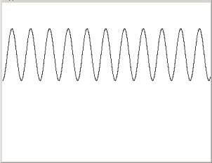 Then we draw the result using a drawstring with a “.” (period) as the String. So, again, x moves on a linear fashion (0, 1,2,3,4,5,…,499) and y move in the y-direction up and down (we also move it 100 pixels lower to be in the center of the screen) in the following way: