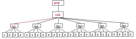 So far we have created a hierarchical structure of points, faces, and solids. The rationale was that solids contain faces, and faces contain points or, reversibly, points compose faces, and faces compose solids. With the same rational we can say that solids compose groups and groups contain solids. This simple hierarchy looks like: