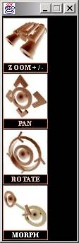 A variation of the Choice button can be found in the following code. Here we create a Frame and we draw predefined images. We then check for the mouse location and if it is clicked on top of an image we replace it with its inverted image and send execute the command. Here is the code: